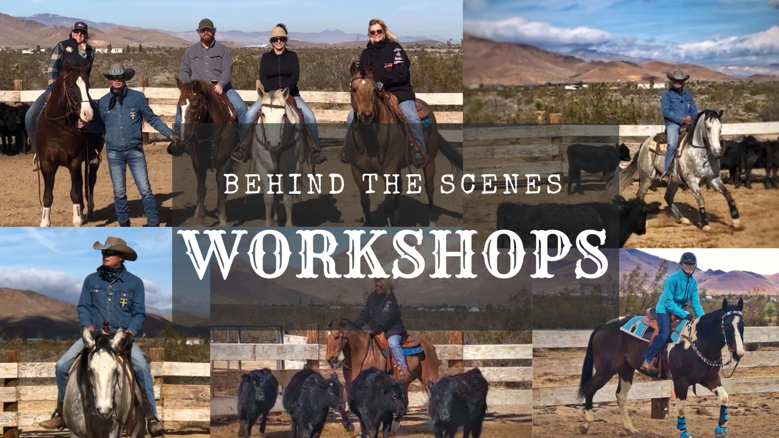 A Sneak peak Behind the Scenes Ranch Horse Workshop. Bill gives a few tips on cleaning up your “Back Up” and coaches a few students. Great way to learn is to watch others as they learn.
